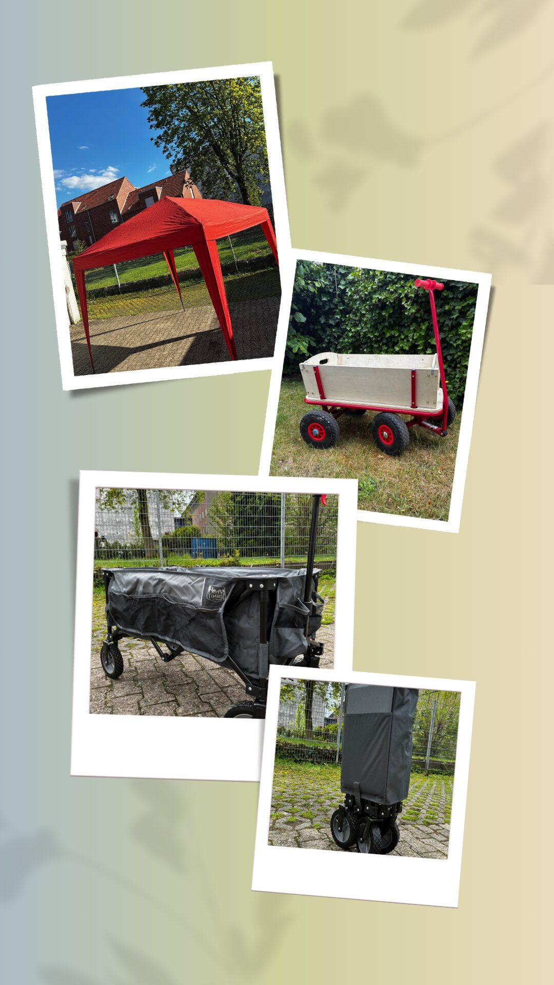 Wir vermieten zwei Bollerwagen - den stabilen Holzi und den kompakten Faltbollerwagen.